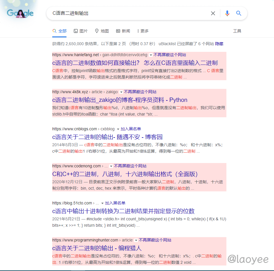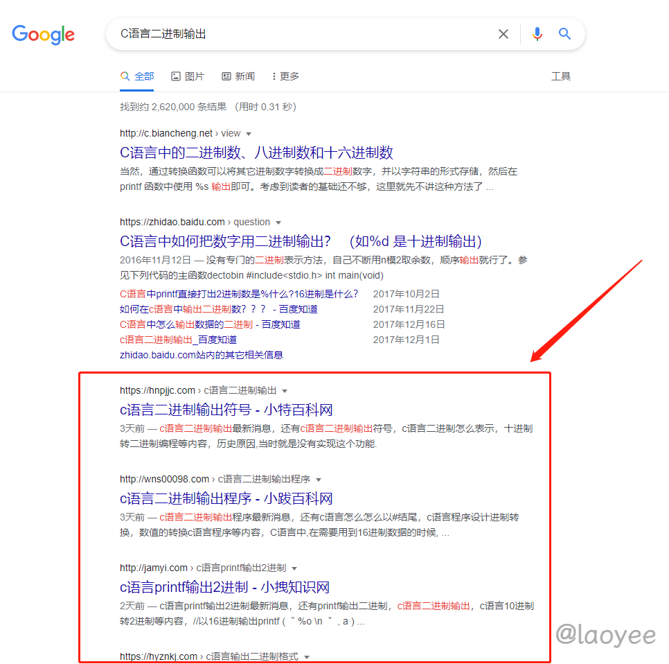 laoyee本文内容为Google搜索引擎使用中的一些实用技巧分享,不包含任何访问Google的方法以及工具!