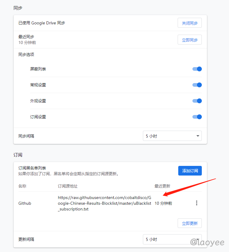当然了光凭这样并不能一劳永逸,只要那些站点稍微变动个文章标题或者更换域名,相应的正则就没用了。但是民间的大佬们纷纷抱团共同维护中文互联网环境,真真切切用爱发电,不断的更新收集这些垃圾采集站的订阅源,且更新频率非常高基本上几天一更新,只要将订阅源添加到uBlacklist相应的位置就能享受更好的优质体验了