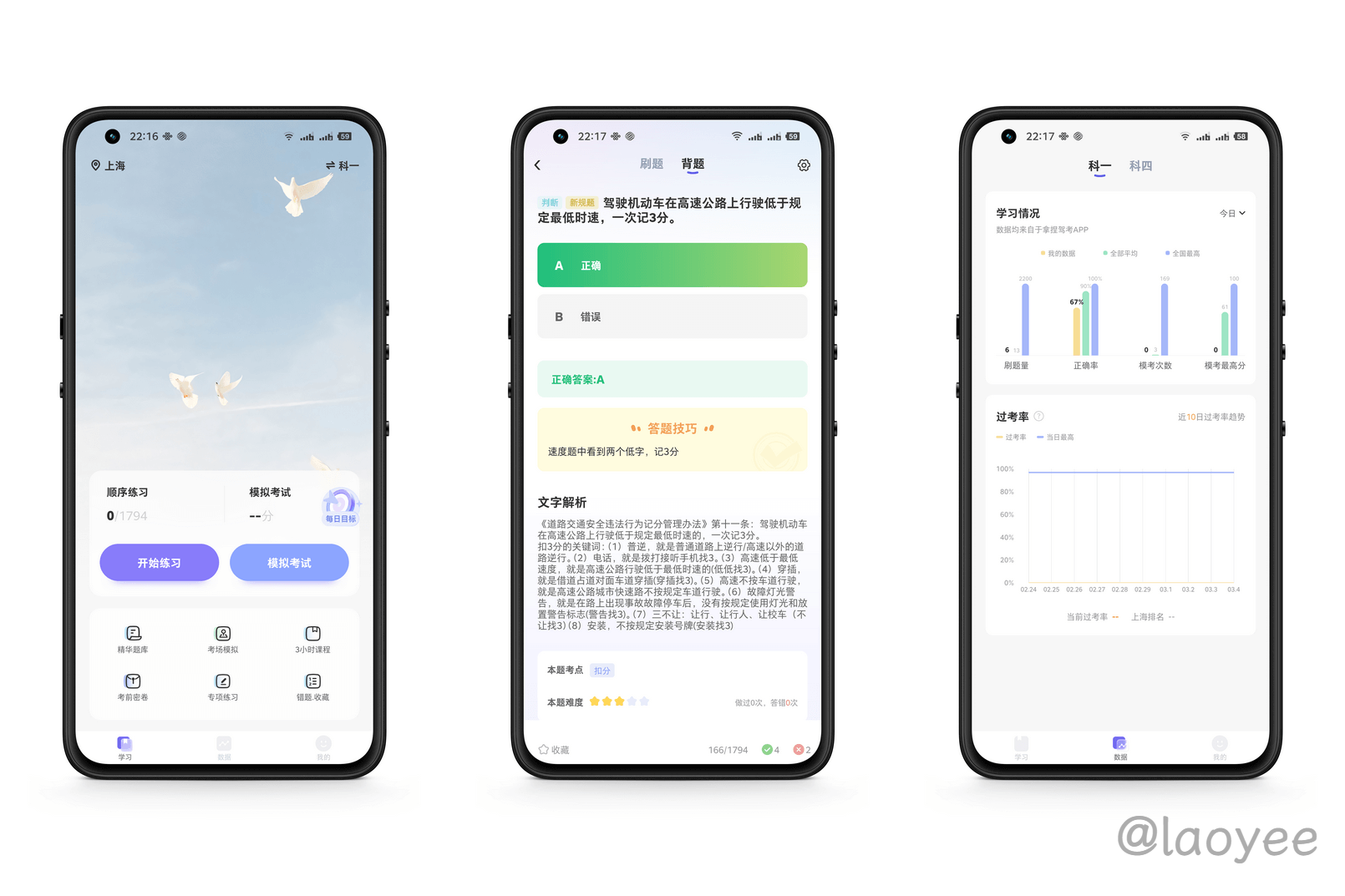 laoyee驾考算是很多人的噩梦,科目二科目三一把过的老夜虽然体会不到挂科的’快乐’,但是科目一刷题确实头大,像驾考宝典、车轮考驾照这类 App 广告太多体验太差,甚至还出了付费服务,非常容易误触进入其它页面