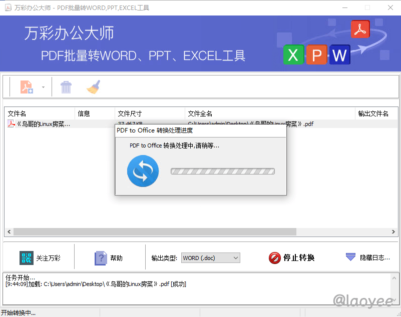 laoyee在线文档转换的工具网站收录了很多,但是毕竟网页性能有限,5M 左右的文件处理还是能完美胜任的,对于一些超大的文件就不行了。而且网址不存书签的话下次再想用就又是一顿找,一款免费的 PC 办公工具就显得尤为重要了