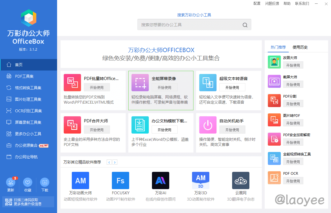 万彩办公大师 — 免费的办公工具百宝箱OfficeBox