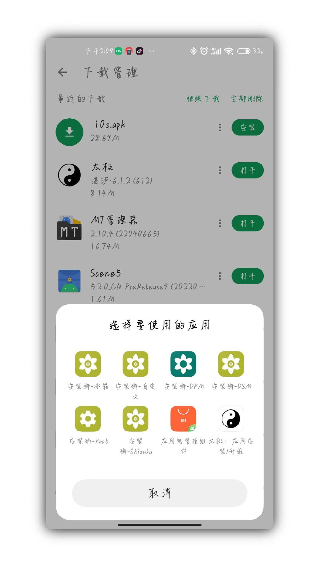 如果以上操作仍无法安装,可以通过第三方工具安装狮 + Shizuku,在 Shizuku 这个软件中通过无线调试来启动 Shizuku 服务,软件里面有详细教程,启动好 Shizuku 后给安装狮授权,勾选授权后就能用安装狮直接安装软件,而不需要调用系统服务来安装软件