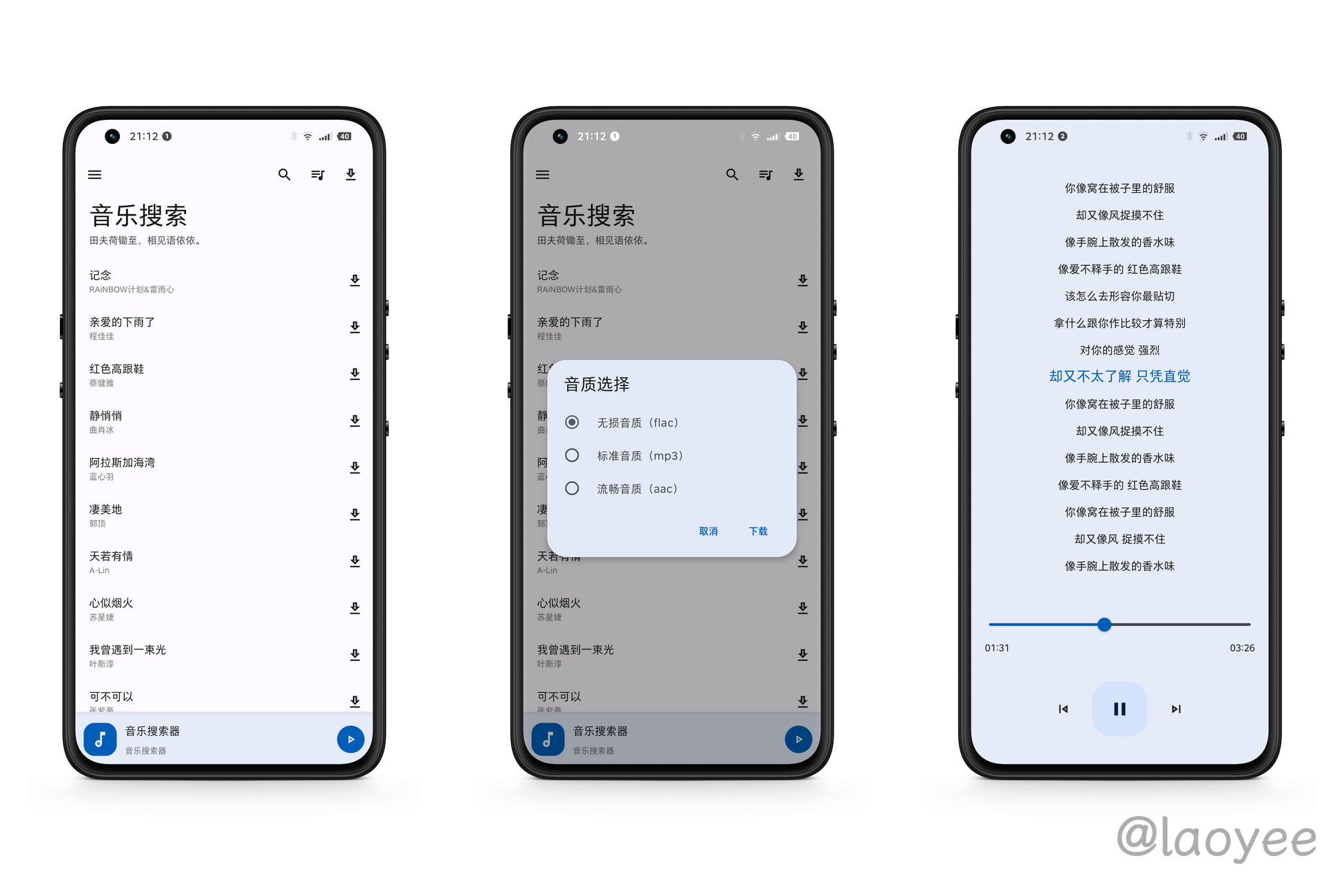 laoyee前几天因为歌词适配下架分享了另外一款软件,可能大量的歌词适配App难民涌入服务直接就停掉了,都准备卸载时冷不丁有个版本更新提示,更新后居然又能正常使用了