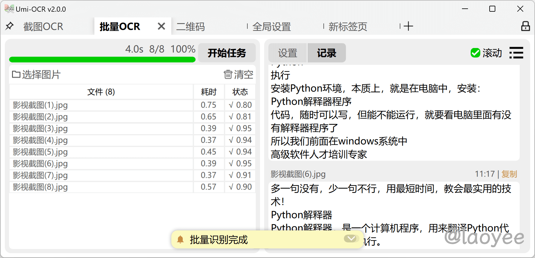 laoyeeOCR 识别发展到现在精确度已经非常高了,各种网站吃相难看不让复制,有了 OCR 识别就可以一键提取出来了,对于一些软件内的文字说明也能通过此方式来复制文字