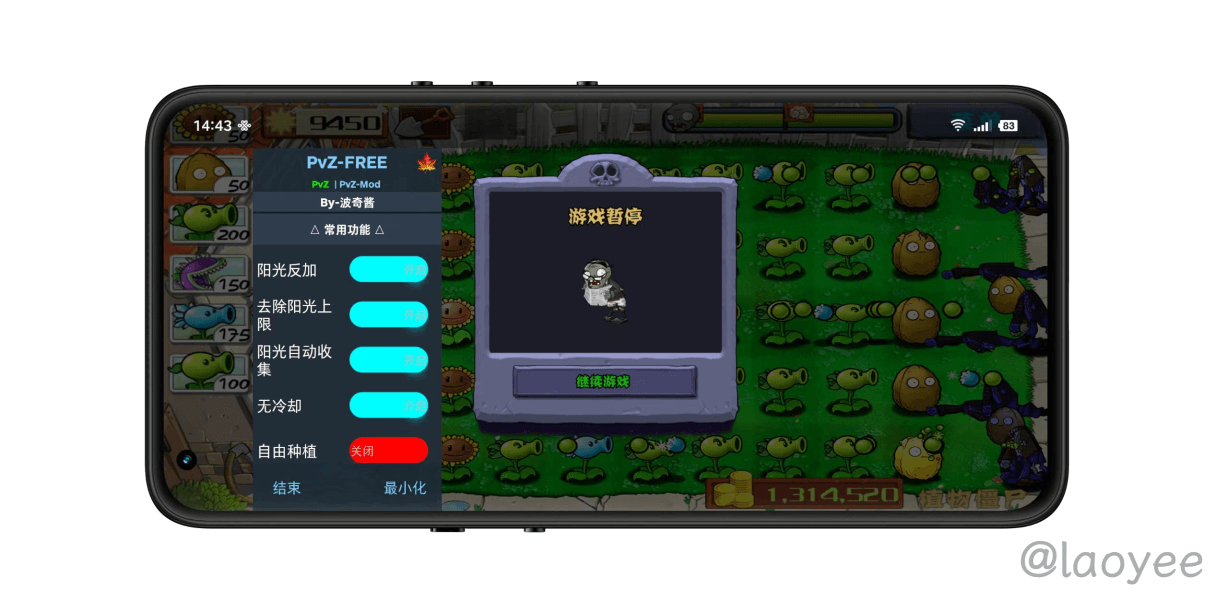 无限植物冷却时间、无限阳光、一直运行、僵尸秒死、植物秒死、智慧树高度